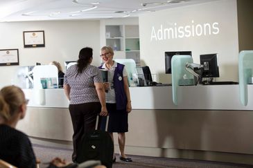 Enter via the main entrance, proceed to Level 2, and check in at the admissions counter.